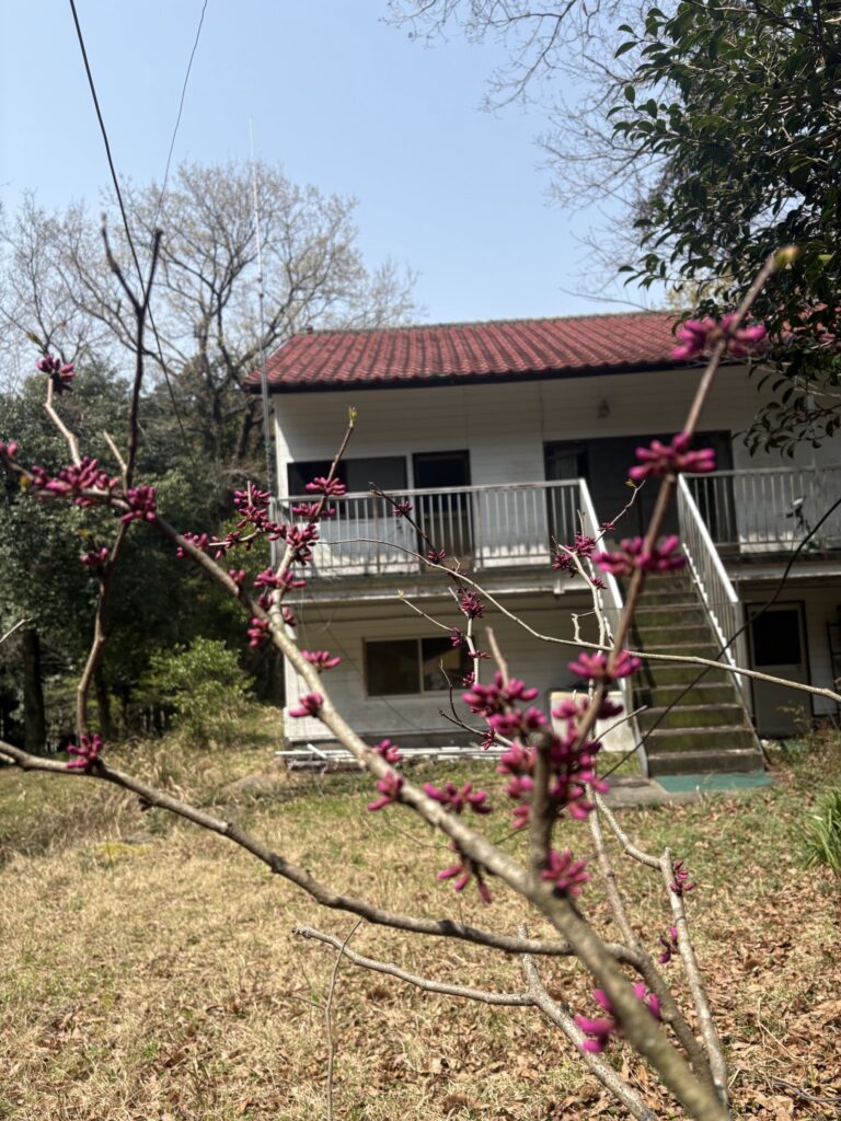 そろそろ裏庭のハナズオウのピンクの花が咲きそうだ。例年より少し遅れている。山小屋の喫茶室は、電気節約のためにファンヒーターをつけている。